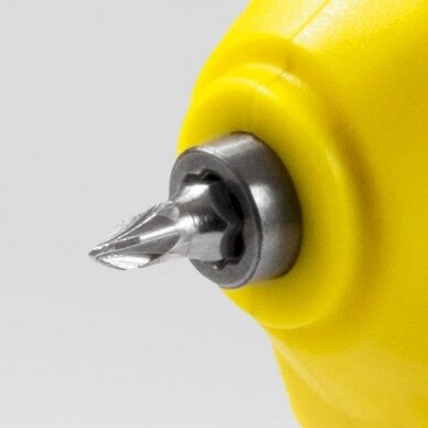 Greitam antgalių pakeitimui įmontuotas padidinamasis stiklas suktuvo-gręžtuvo korpuse;