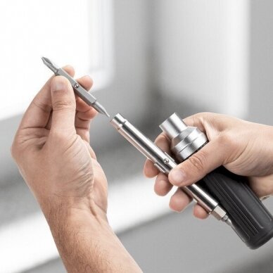 Ergonomiškas atsuktuvas su 9 skirtingais antgaliais;