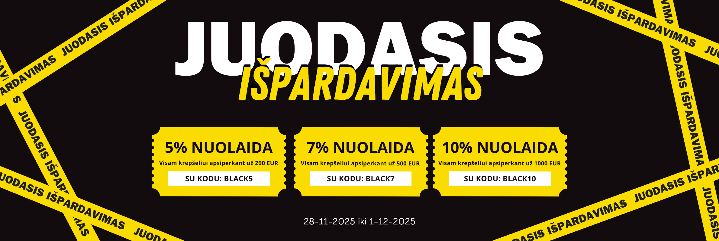 Norint pasinaudoti nuolaida, kodą tiesiog įveskite krepšelyje prieš apmokant užsakymą. Nuolaidos taikomos visoms elektroninėje parduotuvėje esančioms prekėms, išskyrus jau pažymėtas specialiomis nuolaidomis.