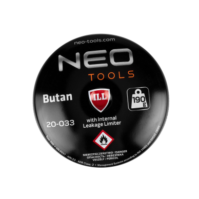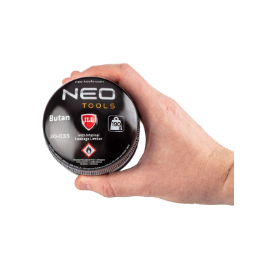 • The soldering lamp from NEO is made of plastic. The lamps use 190 g propane-butane cartridges. The heating temperature is 1350°C. The product has adjustable flame size. Gas consumption is 87g/h, the power of the device is 1.2kW. Allows soldering on tin, aluminium, silver, shaping or bending of pipes, plates, etc. In addition, the lamp can be used for stripping varnish, firing up barbecues, loosening screws and defrosting pipes. 4 NEO butane gas cartridges (ref. 20-033) weighing 190 g. The unique gas locking system increases the safety of use. A cartridge for universal use, e.g. in soldering lamps or tourist cookers. The NEO brand is aimed at professionals.