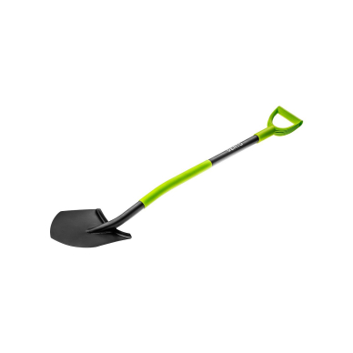 • Spade VERTO (ref. no 15G010) total lenght 1250 mm. Dedicated to garden and construction work. Hardened high quality steel head with pointed edge. Handle made from shaped steel pipe with synthetic covering for better grip control. Ergonomic shape of handle and plastic grip allows more comfortable and controllable work. Sharp spade, metal handle, hardened head, plastic handle, total length 1250 mm.