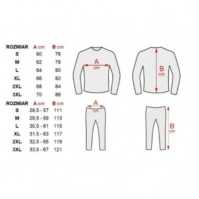 Norėdami teisingai pasirinkti dydį, išsimatuokite panašaus dizaino drabužį iš savo spintos ir palyginkite jį su žemiau pateikta lentele: