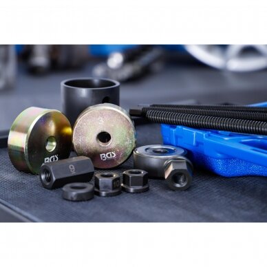 priekinės ašies valdymo svirties galinėms ir priekinėms įvorėms nuimti ir sumontuoti