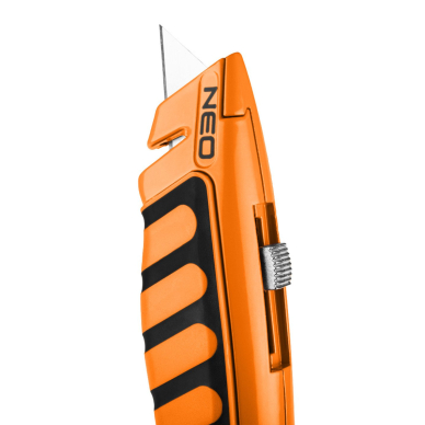 • Trapecijos formos peilis, metalinis korpusas 63-707, NEO TOOLS yra trapecijos formos peilis su ašmenų užraktu. Jame yra gumuota rankena ir praktiška lynų ir diržų pjovimo funkcija. Jo ašmenys pagaminti iš tvirto metalo. Tai NEO TOOLS prekės ženklo įrankis, kurį galima naudoti įvairiais būdais.