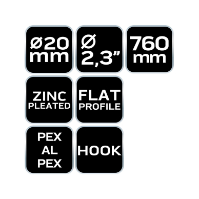 • The 20 x 760 mm NEO brand pipe bending spring with a wire diameter of 2.3 mm provides professional solutions for work with PEX type pipes. The tool allows you to bend and shape pipes in a specific direction. It increases the comfort of work and allows for faster results. The surface of the spring is reinforced with corrosion and abrasion resistant zinc. Its flat profile promotes lack of deformation and the hook makes it easier to locate the spring in the pipe.