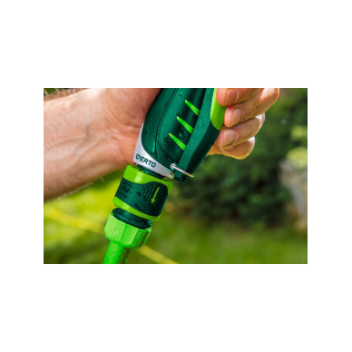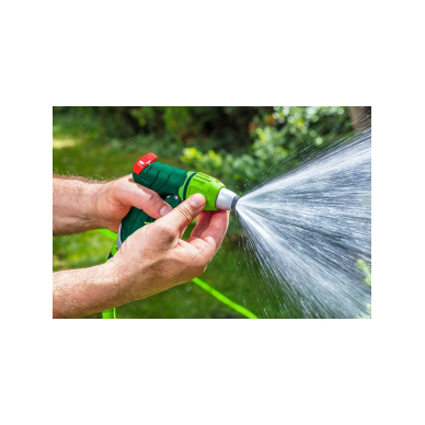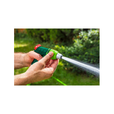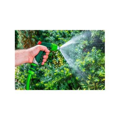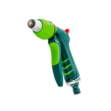 • VERTO adjustable water spray gun. Adjustable head allows to set up water stream shape, from mist to strong spot stream. The spray gun features front lever lock that allows for continuous operation. Handle with ergonomic shape fits well in hand and does not slip off, which improves comfort at work. Adjustable front pull lever nozzle, the ability to choose a stream with different strength, clear stream marking, bimaterial handle