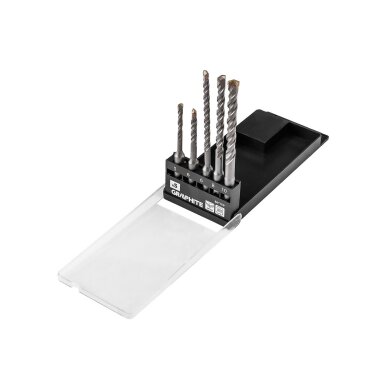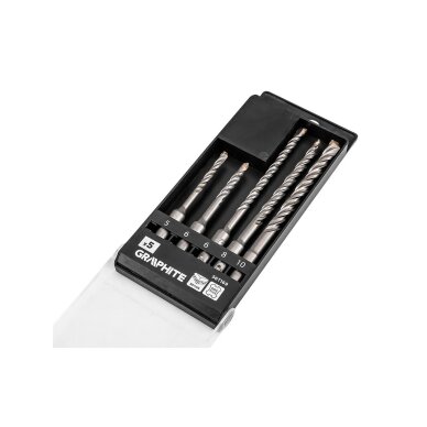 • SDS plius dvigubos spiralės betono gręžimo bitų rinkinys 5 x 6 x 110 mm, 6 x 8 x 10 x 160 mm, 56T169 rinkinys grafito yra betoniniai, plytų ir akmens gręžimo bitai su dviguba spiralė ir SDS plius. Jie pasižymi 5, 6 mm (esant 110 mm ilgio) ir 6, 8, 10 (160 mm ilgio) skersmens. Jie pasirodys naudingi atliekant daugelį užduočių aplink namus ir dirbtuvėse.