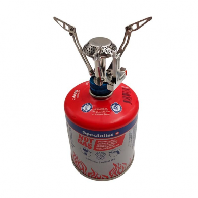 • Kompaktiška nerūdijančio plieno dujinė viryklė tvirtinama ant dujų baliono.