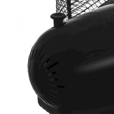 • Kai vasarą pakyla temperatūra, stalinis ventiliatorius TVE 18, kurio sparno skersmuo yra 40 cm, užtikrina galingą vėją ir vėsinimą. Vizualiai kompaktiškas stalinis ventiliatorius išsiskiria aiškiu ir madingu juodos spalvos dizainu. Dar viena praktiška savybė – integruota rankena, skirta greitai pakeisti vietą.