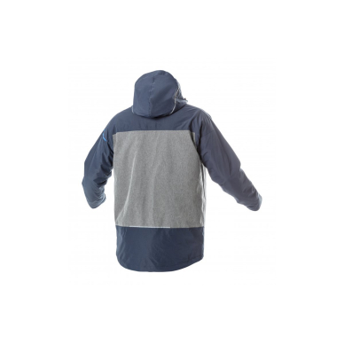 • . medžiaga: tamsiai mėlynas audinys 100% poliesteris, pilkas melanžinis audinys 96% poliesteris + 4% elastanas su TPUmembrana;. atsparumas vandeniui 5000 mm H2O, pralaidumas orui 800 g/m²/24h;. klijuotos siūlės;. pamušalas: 100% poliesteris 210T tafeta, 50 g;. klostuotas užtrauktukas su 3 užsegimais;. 2 apatinės kišenės su užtrauktuku, užsegamas atvartu, 1 kišenė krūtinėje su užtrauktuku, 1 vidinė kišenė dokumentams;. pilnas gaubtas (kapišonas) su aukščio ir gylio reguliavimu;. striukės apačios suveržimo reguliavimas;. rankovių reguliavimas Velcro;. šviesą atspindintys elementai – striukės nugara ir gobtuvas;. nugaros prailginimas, apsaugantis nugarą;. tamsiai mėlyna spalva – audinys išlaiko spalvos intensyvumą nepaisant daugkartinio skalbimo;. universalus, naudojamas lauke.